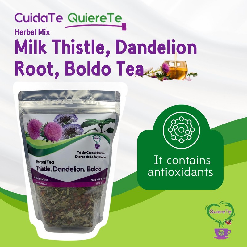 Cardo Mariano, Milk Thistle, Dandelion Root, Boldo Tea, Quiere Te 100% Natural, Blend Herbal Tea for Liver Detox Support, Cleanse and Digest, Non-GMO, Sugar Free, Caffeine-Free, Up to 100 Cups, 1 Bag