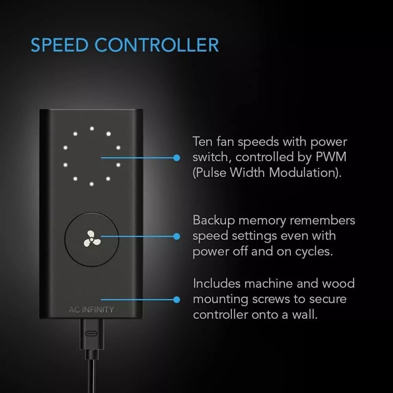 • Features: Mixed Flow Design, Wired 10-Speed Fan Controller