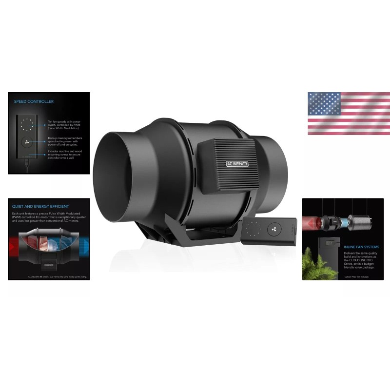 Experience a serene atmosphere with our Quiet 6” Inline Duct Fan featuring a sophisticated Mixed Flow Design and an impressive 352 CFM Airflow. Perfect for grow tents, it expertly ventilates spaces, exhausts odors, transfers heating and cooling to rooms, and provides efficient cooling for AV closets.