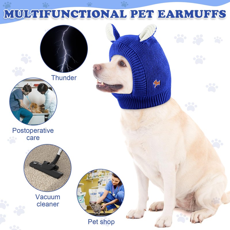 Quiet Ears for Dogs, Dog Ear Muffs Noise Protection Knitted Dog Hats Pet Ears Warm Dog Ear Cover Winter Hat Dog Snood Head Wrap Bunny Costume for Medium to Large Dogs Cats Pets (Royal Blue)