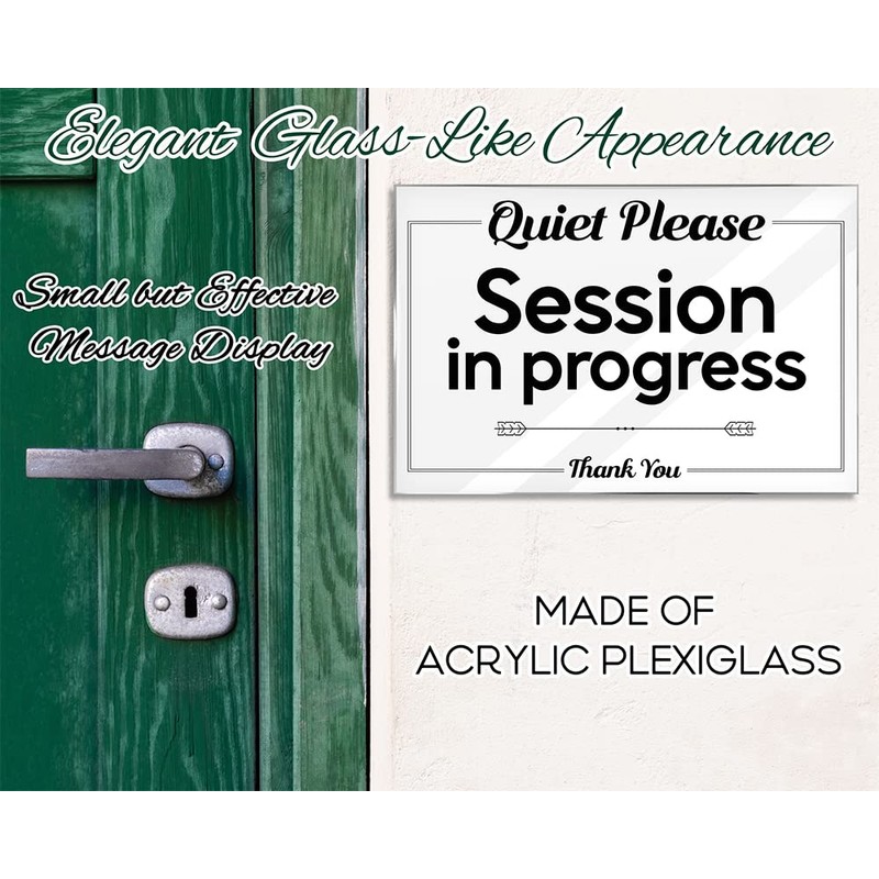 Quiet Please Session in Progress Thank You - 4"x6" Acrylic Sign w/Mounting Tape - Ideal for Maintaining Silence During Meetings, Calls, or Focused Work in Offices, Rental Homes, or Shared Spaces