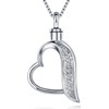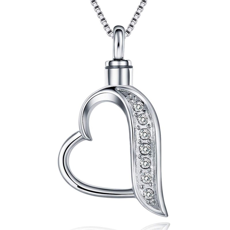 Quiges Stainless Steel Memorial Ash Holder Open Crystal Heart Pendant for Cremation Urn Keepsake with Adjustable Cable Chain Necklace 46 to 52 cm