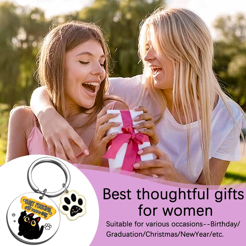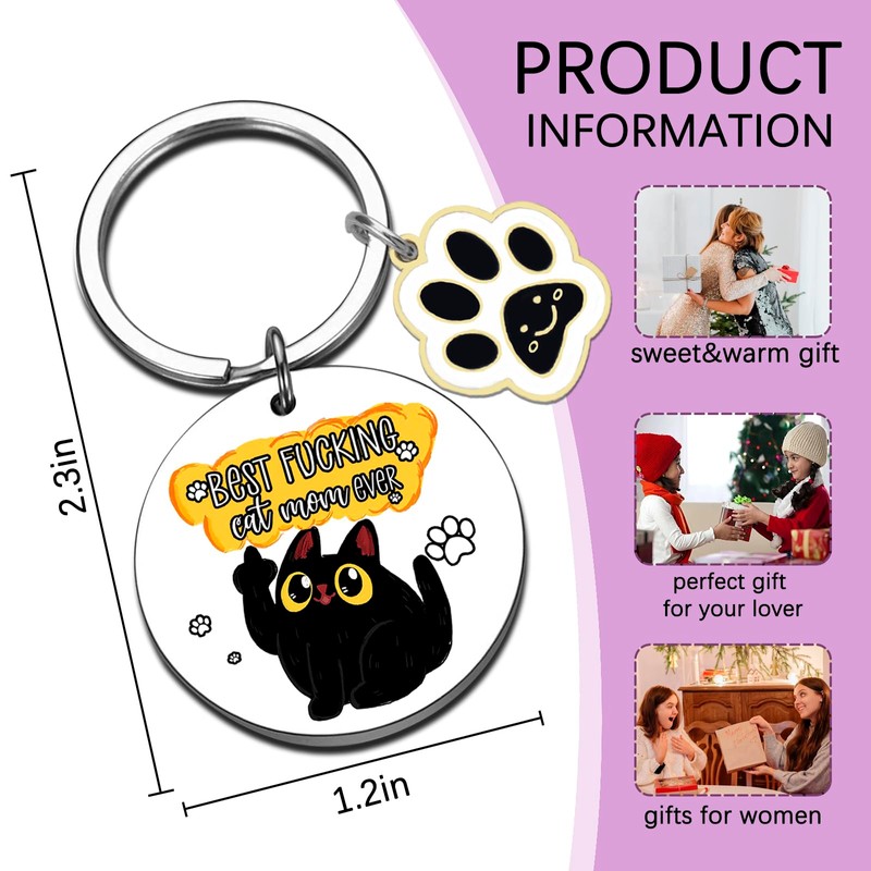 - cat gifts for women:This adorable keychain featuring fun cat-themed phrases is the best gift for your loyal cat mom friends. Let her know how much you and her fur baby love her. The cat keychain is perfect for cat lovers, small and portable, and incredibly cute!