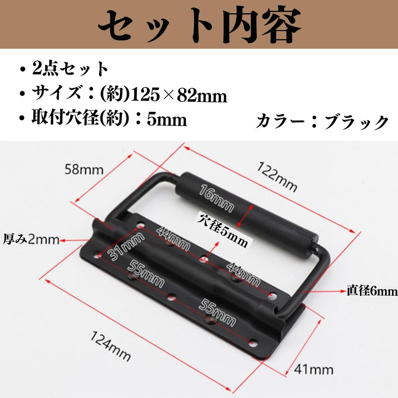 (Set Contents) Set of 2; Size: Approx. 4.9 x 3.2 inches (125 x 82 mm); Weight: 6.9 oz (175 g); Mounting hole diameter (approx.): 0.2 inches (5 mm); Color: Black.