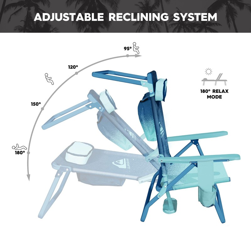 Quiksilver 2-Pack Beach Chair Bundle – Lightweight Folding Chairs with Adjustable Recline, Cup Holders, and Carry Bags – Portable and Durable Chairs for Beach, Camping, or Outdoor Events