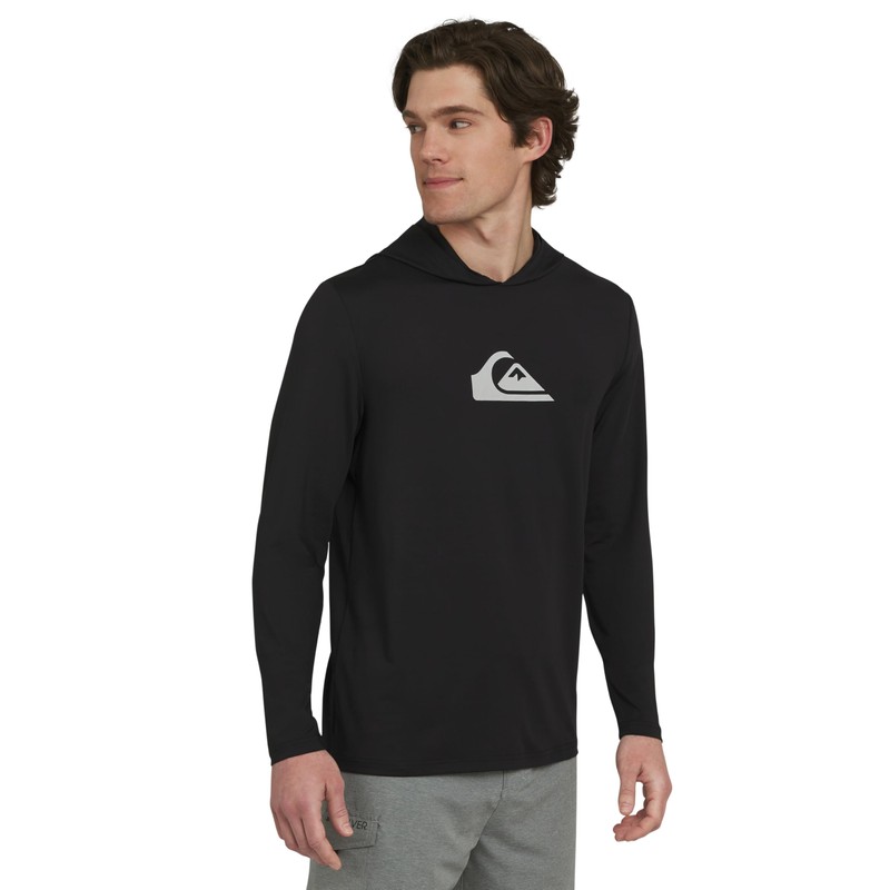 Quiksilver Men's Standard Swimwear Regular Fit UPF 50 Sun Tee Hooded Rash Guard Shirt, Black
