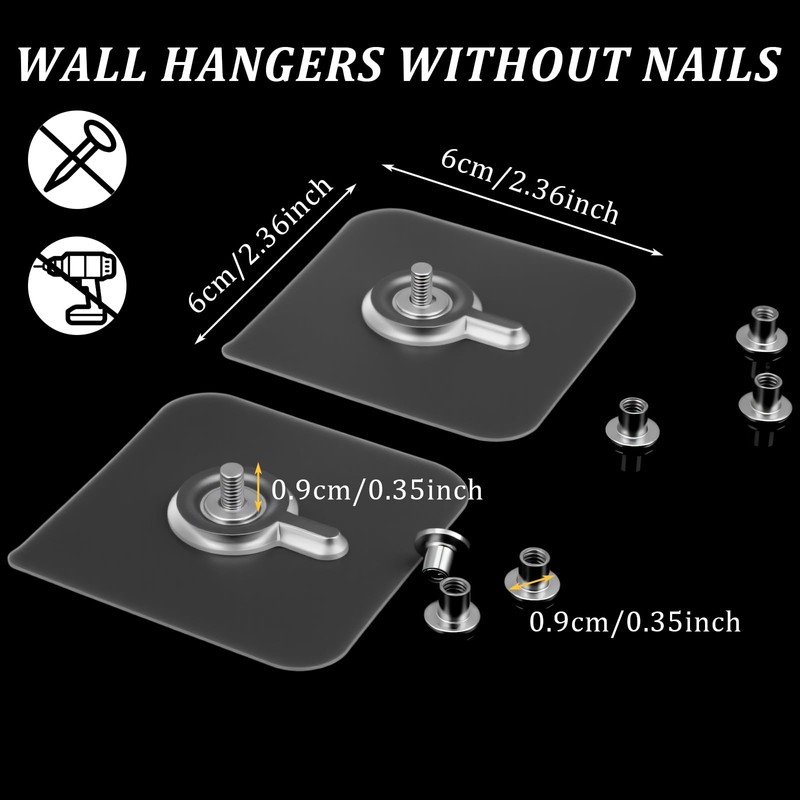 - 【Package Includes】: You will receive 20 wall mount screw hooks measuring 2.36 x 2.36 inches. A sufficient quantity of wall hangers without nails to meet your daily needs