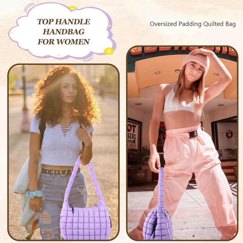- 【Multipurpose & Ideal Gift】Nylon Quilted Tote Bag is suitable for girls, women as a casual travel bag, suitable for gym, supermarket, home, beach, party and vacation etc. Perfect gift for friends, girlfriends, bridesmaids, family and colleagues.