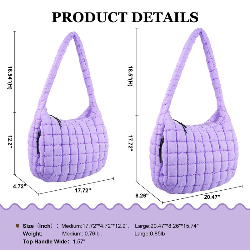 - 【Large Quilted Puffer Tote Bag】Quilted Puffer Tote Bag with 17.7" × 15" × 7.8" size,The perfect size easily accommodates your cosmetics, smartphones, laptop, sunglasses, umbrella, wallets, and daily necessities. Suitable for walking, hiking, shopping, dating, fitness, working, traveling, and daily use.
