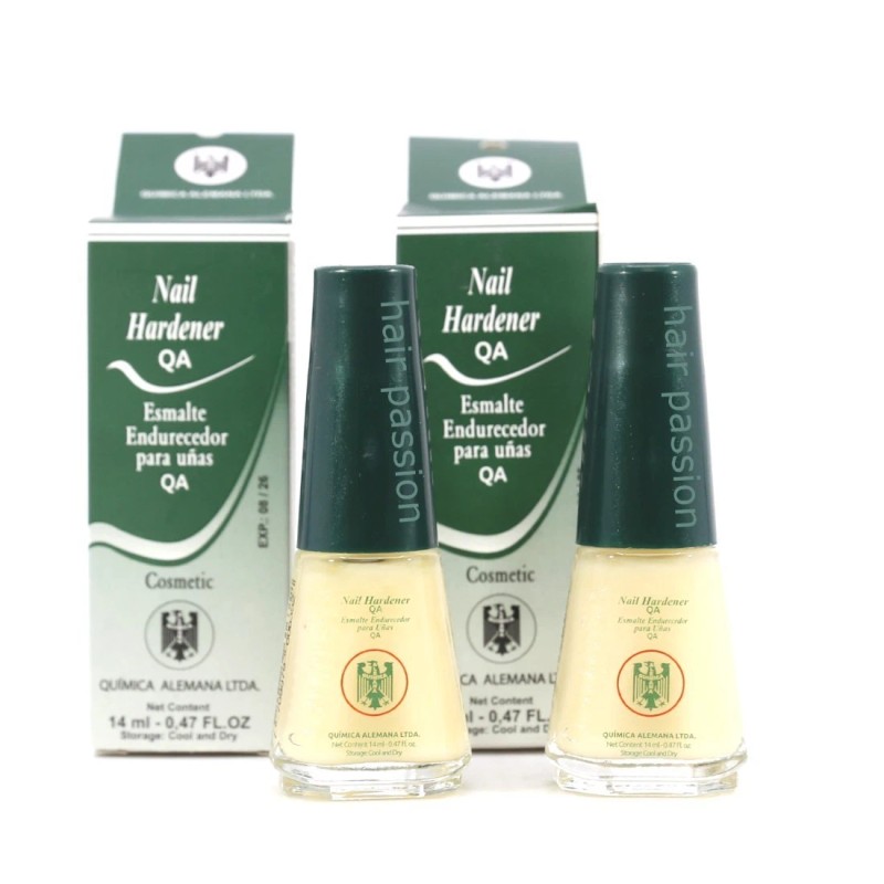 - QA Nail hardener is an advanced 3-in-1 formulation that functions as a nail hardener, base coat, and quick-dry solution.