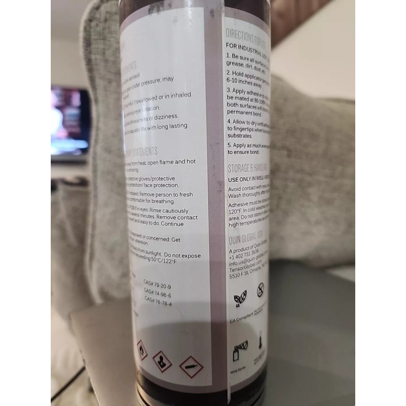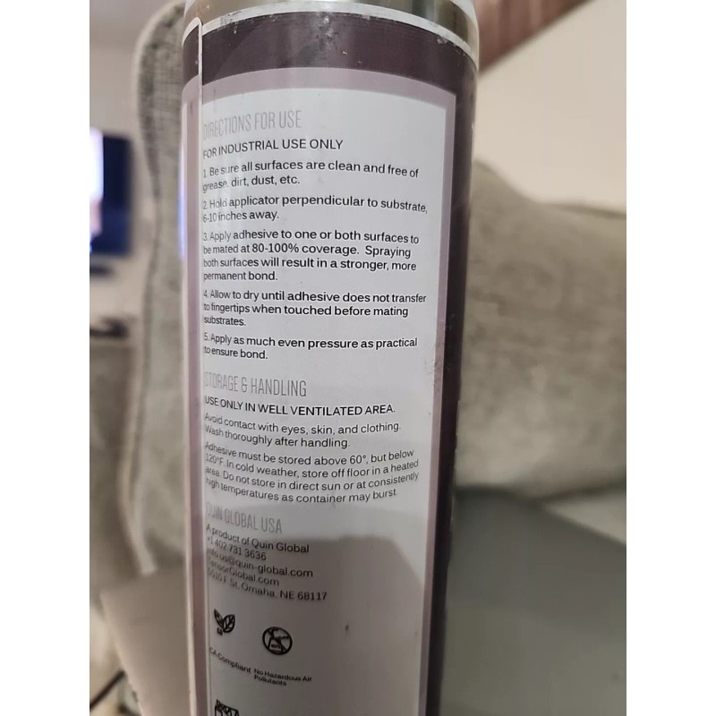 With its pressure-sensitive formula, this adhesive is easy to apply and holds fast. It is also compliant with CA regulations, so you can use it with peace of mind. Whether you're a professional in the industry or a hobbyist, this Quin Global adhesive is a must-have for your projects.