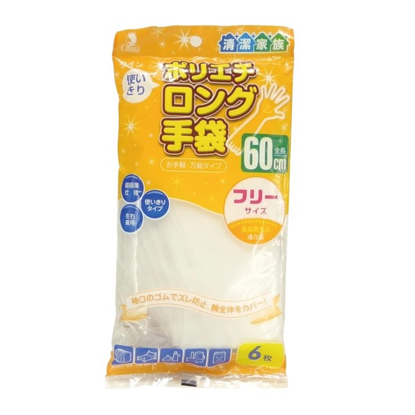 Quinn Polyethylene Long Gloves, 6 Pieces, One Size Fits Most