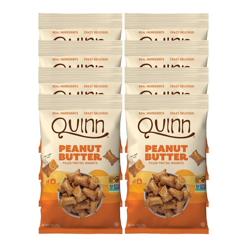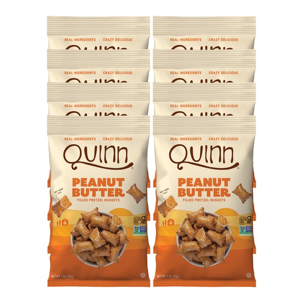 Quinn Gluten Free Peanut Butter Filled Pretzel Nuggets - Made with Real Ingredients, Whole Grain Sorghum, Sea Salt, Vegan, Dairy Free, Non-GMO - 7 Oz (Pack of 8)