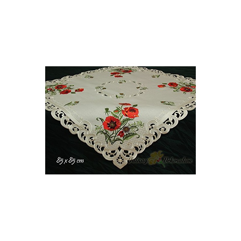 Quinnyshop Red Poppy Embroidery Tablecloth 85 x 85 cm Square Polyester Cream