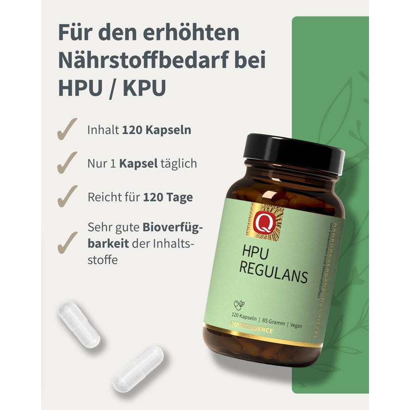 Quintessence Wissen, was gut tut. Quintessence HPU Regulans, HPU Kapseln 120 Stk. - Fr erh?hten N?hrstoffbedarf bei HPU/KPU, Ohne Zusatzstoffe, Abgestimmter Mix aus Vitaminen & Mineralstoffen, Vegan, Produziert in Deutschland