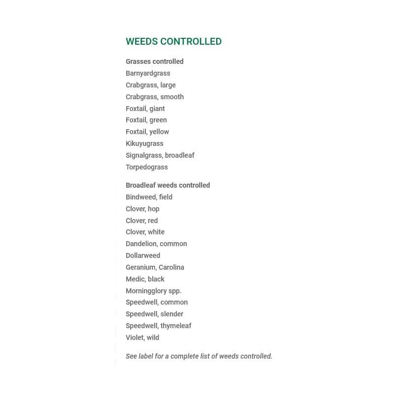 - CONTROLS crabgrass including the mid-tiller stage of growth