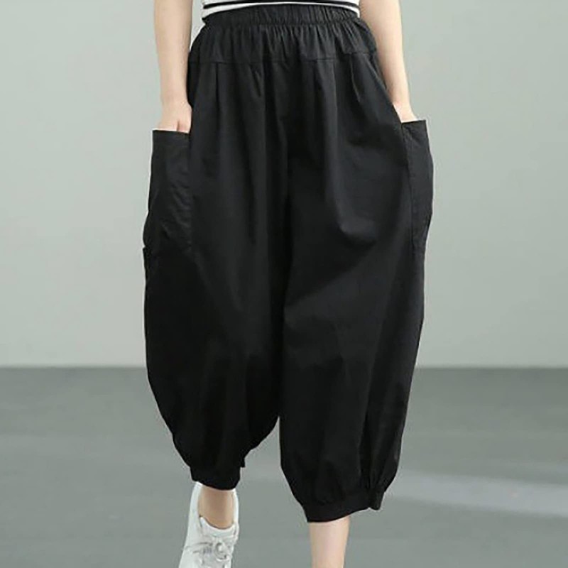 QUINTRA Women's Harem Pants High Waist Cropped Loose Casual Trousers Shorts Women With Pockets, black, XL