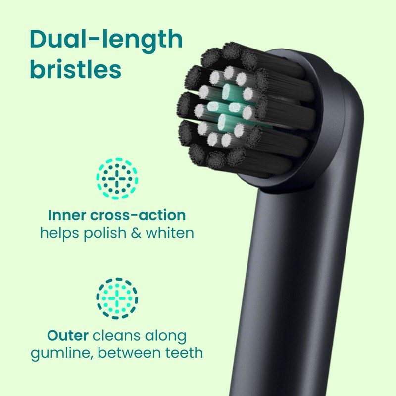- Oscillating Rotating Brush Head: Replaceable dual-length soft bristles clean along the gumline, between teeth, and help polish and whiten. Compatible with all quip 360 Oscillating Toothbrushes. Includes 4 replaceable toothbrush heads
