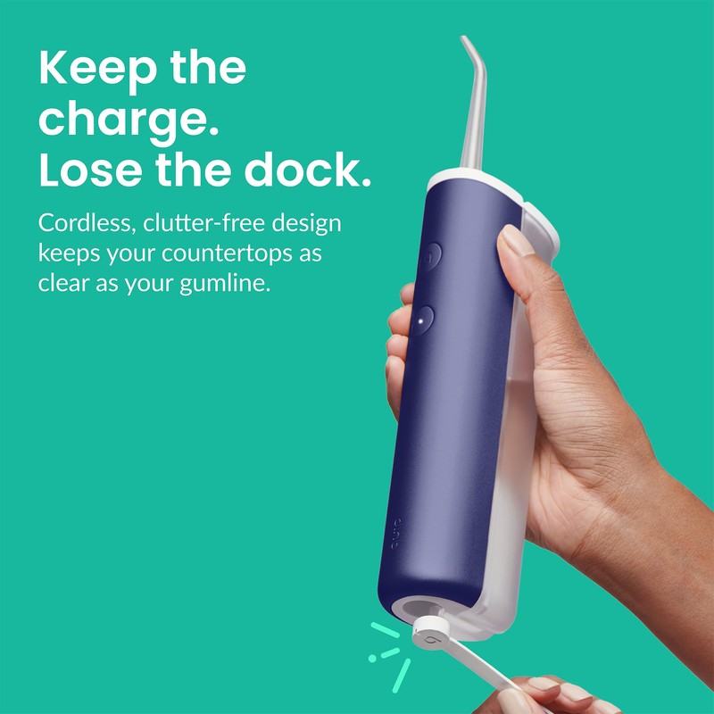 quip Water Flosser with Replacement Tip - Cordless Water Flosser with Adjustable Pressure - Teeth Cleaner Pick with 360 Degree Rotating Replaceable Tip, Rechargeable Water Dental Pick - Midnight Blue