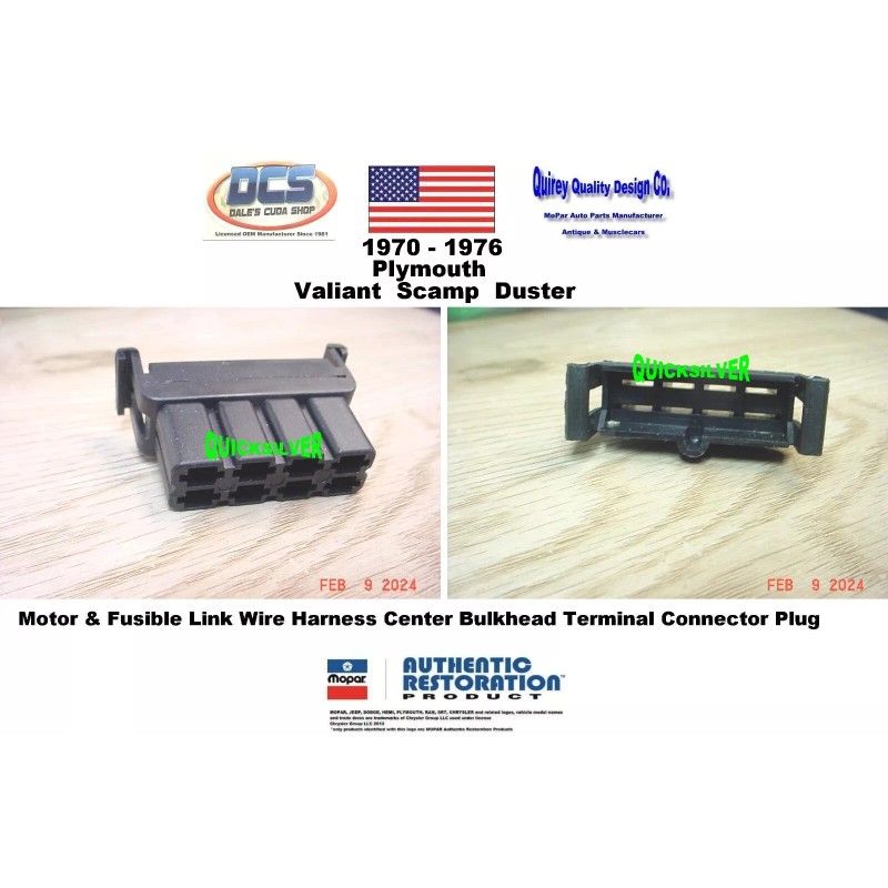 Quirey Quality Design Co. 1970 76 Valiant Scamp Duster Motor Fusible Link Wire Harness Plug 2586590 New US