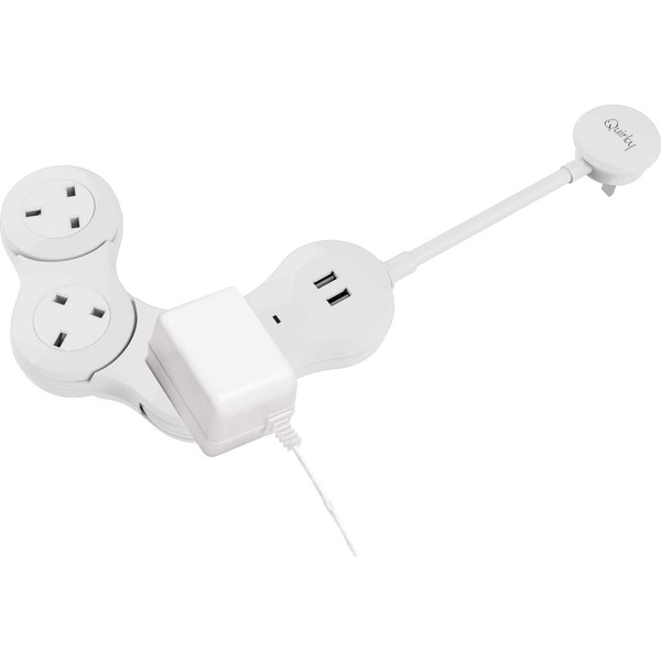 Quirky Pivot Power Desktop Bendable 3 Socket 2 USB White Extension Lead Extension Cord