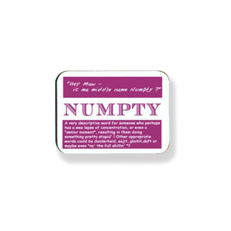 Quirky Scottish Doric Dialect Phrase Drinks Coaster - Numpty