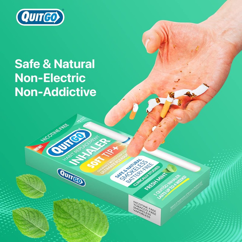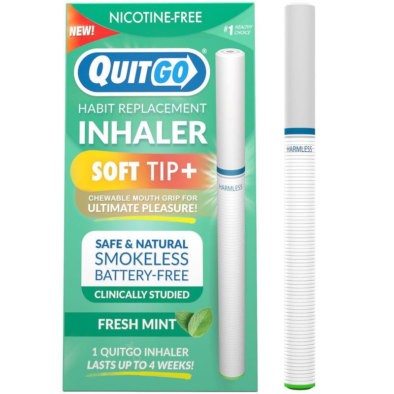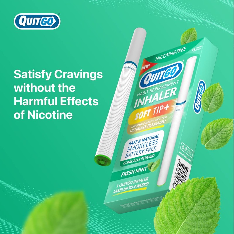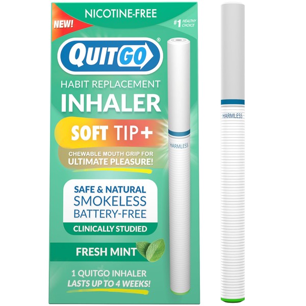 QuitGo Habit Replacement Inhaler with Soft Tip Chewable Mouth Grip, Oral Fixation Support, Clinically Studied Made in USA (Fresh Mint,1 Pack)