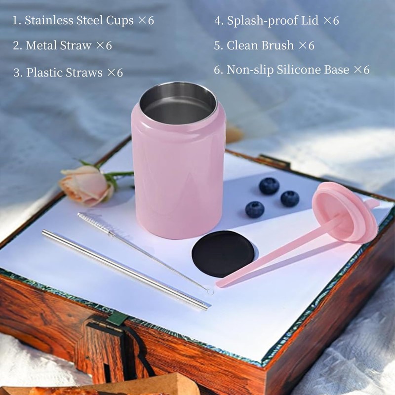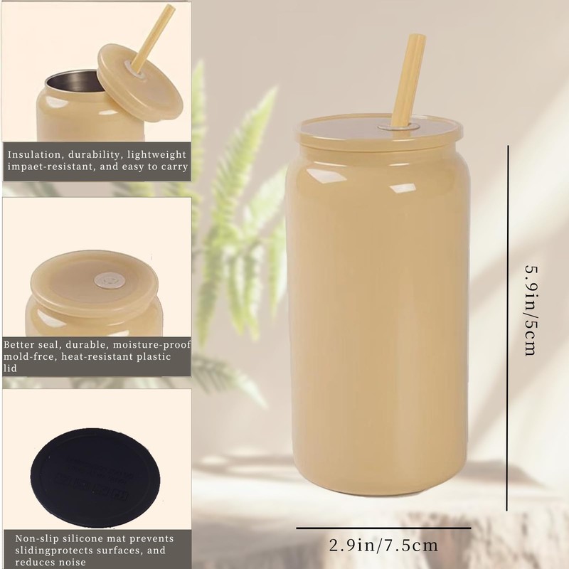- 【Included Items】6x 16 oz colored glass can cups with lid and straw(304 food-grade), 6x BPA-free plastic lids, 6x reusable straws (stainless steel ), 6x cleaning brushes, 6x non-slip silicone pads, + gift-ready shrink wraps & box.