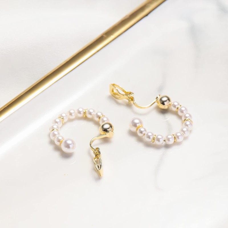 QUKE 2.5CM Simulated Freshwater Pearl Golden Clip On Hoop Earrings Non Pierced Ears Hoops for Women Girls