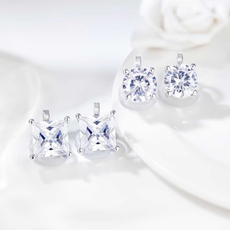 - 【SIZE & MATERIAL】Square Size:0.9CM*0.9CM;Circle Size:0.7CM*0.7CM.These clip ons are made of white AAA+ Zircon,a synthetic gemstone that is similar to a diamond with a vibrant sparkle.It's hard and not easy to deform.