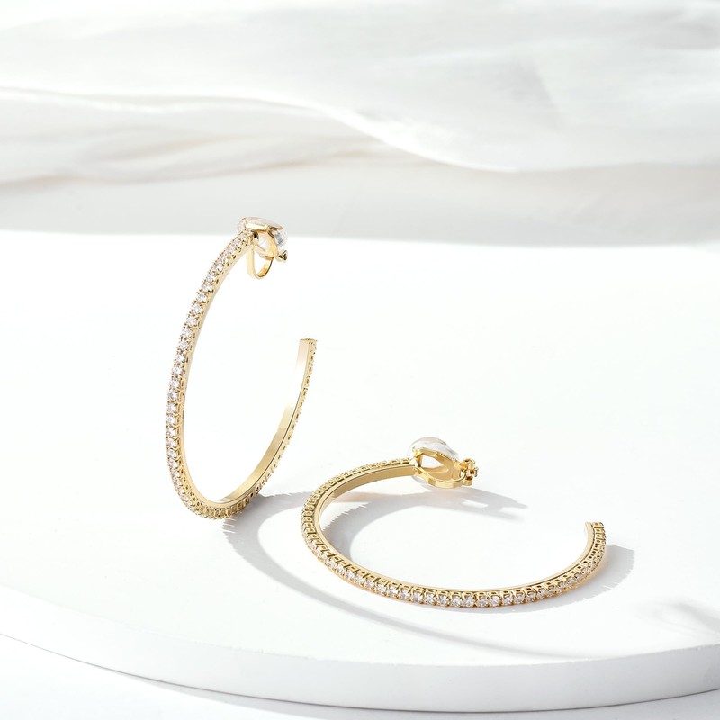 - 【Shiny Large Hoop Earrings】There are Cubic Zirconia inlaid around the hoop non piercing earrings. Simple yet sophisticated, the gold hoop clip earrings are bright and trendy to wear and add a unique vibe to your look!
