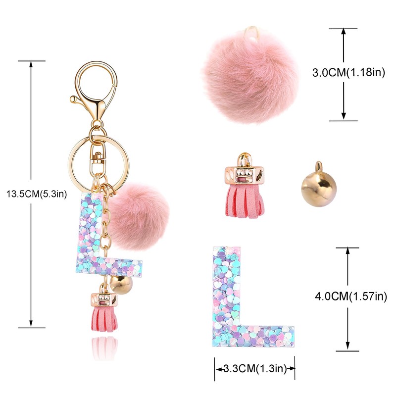 - 【Chic Design】The fluffy keyrings for women have heart shaped sequins inside the letter, with golden ball, pink fur ball and tassel, it is very cute and fashionable. It can meet your diverse decorative needs and is perfect for your bag.