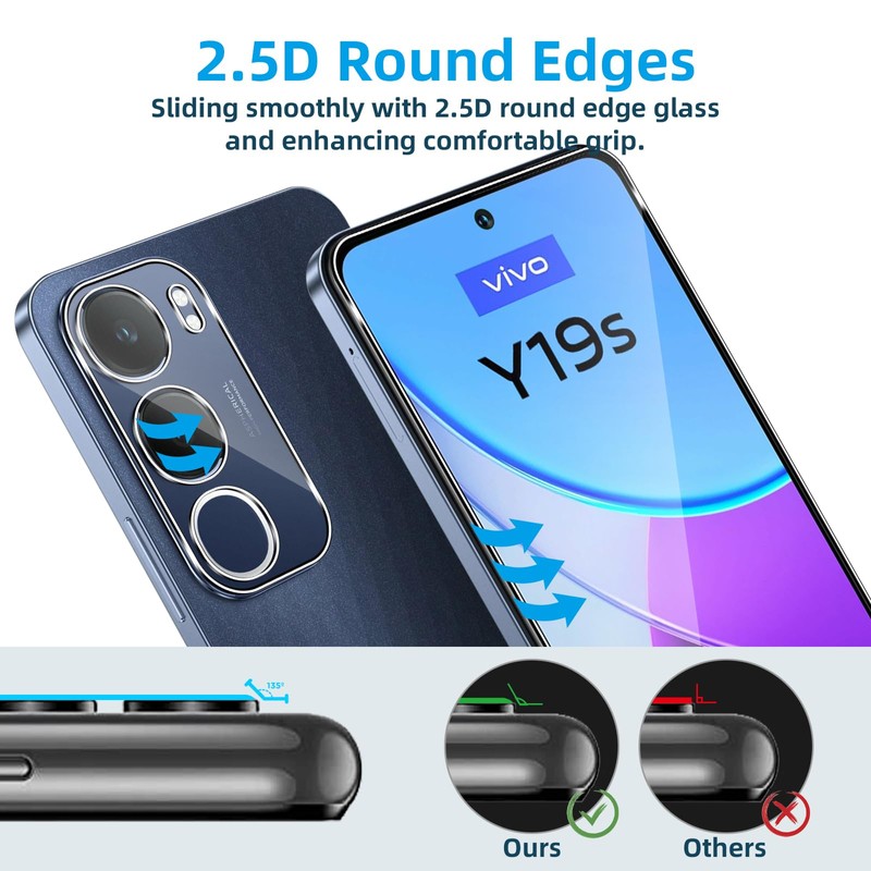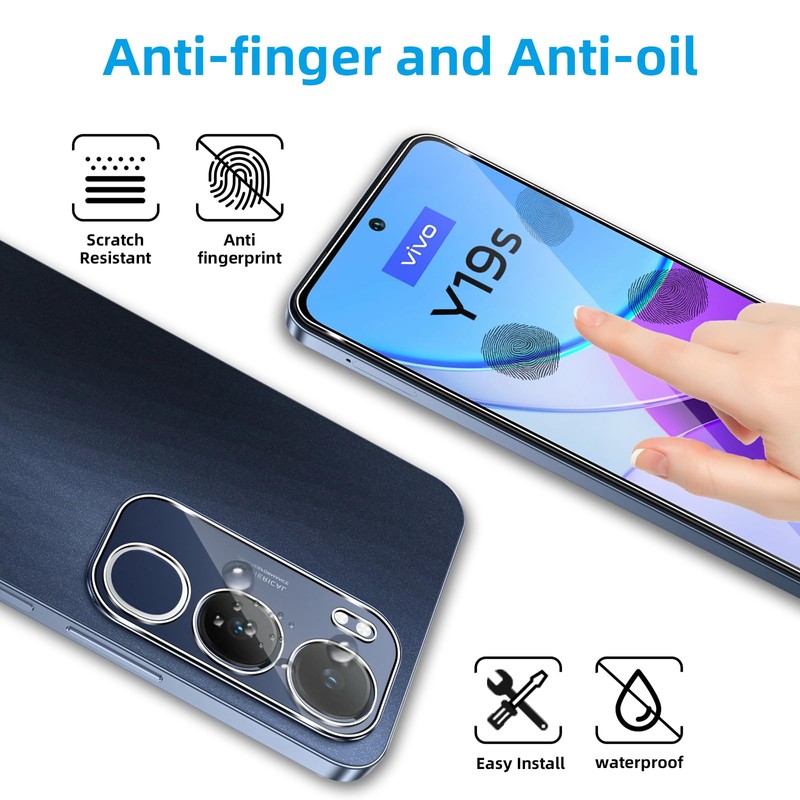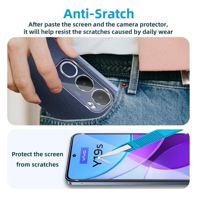- Compatible model: specially designed for Vivo Y19S protective film. The package contains 2 camera protection films + 2 tempered glass screen protectors as well as installation tools.