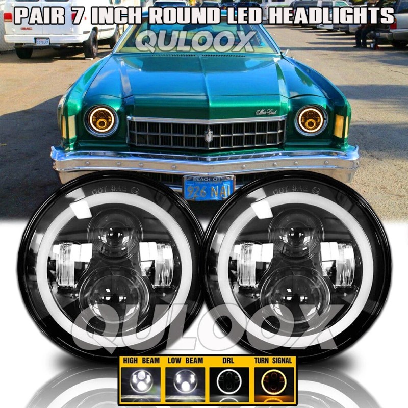 QULOOX Pair 7Inch Round LED Headlights DRL Hi/Lo Beam For Chevy Monte Carlo 1970-1975