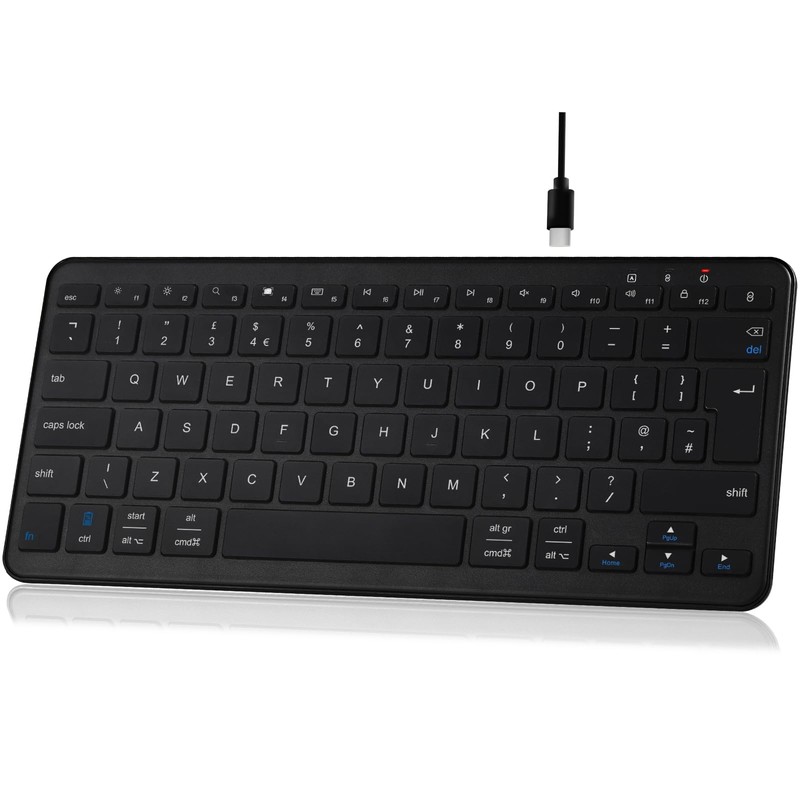 Qulose Bluetooth Wireless Keyboard, Mini Keyboard Rechargeable USB-C with Media Hotkeys, Ultra Slim Ergonomic, Compatible with Apple macOS/iOS/Windows/Android, UK Layout Compact-Black
