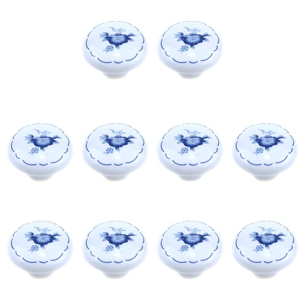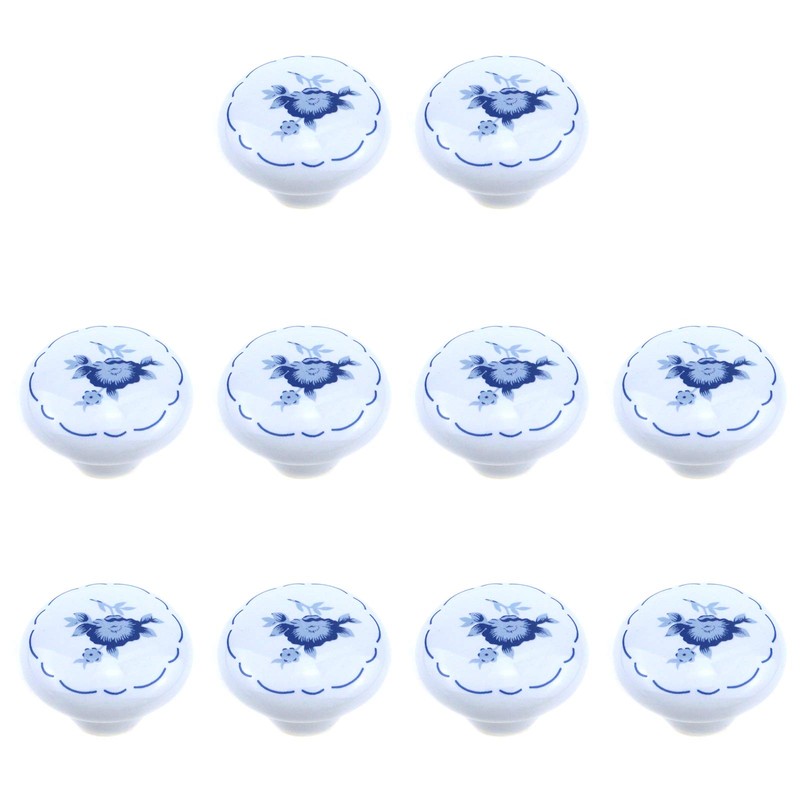 Quluxe 1-1/2 inch Ceramic Knobs Hand Painted Kitchen Cabinet Knobs Pulls Retro Drawer Handles for Dresser Cupboard Wardrobe- Blue Flower (Pack of 10)