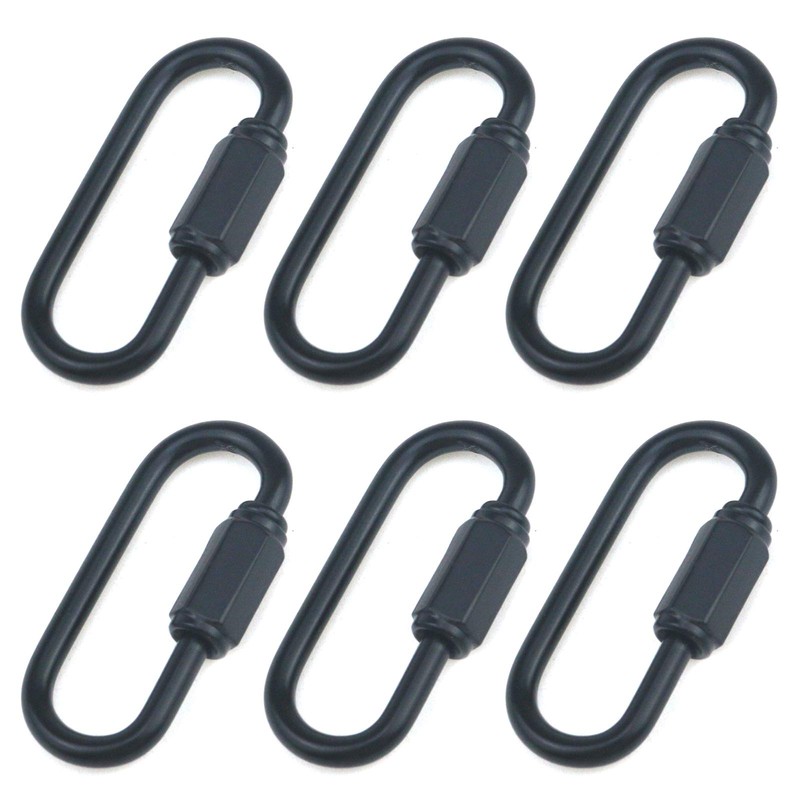 Quluxe Heavy Duty D Shape Chain Locking M3.5 MM Chain Quick Link Connector for Hiking Camping- Black (Pack of 6)