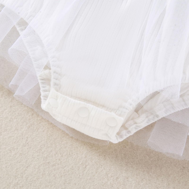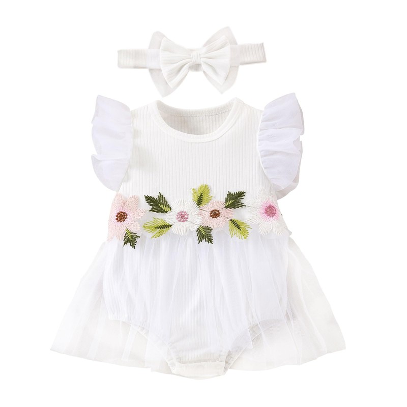 - The ruffled flying sleeve design and flower embroidery on the waist make it more unique. The snap button design of the romper is convenient for changing diapers