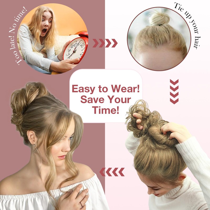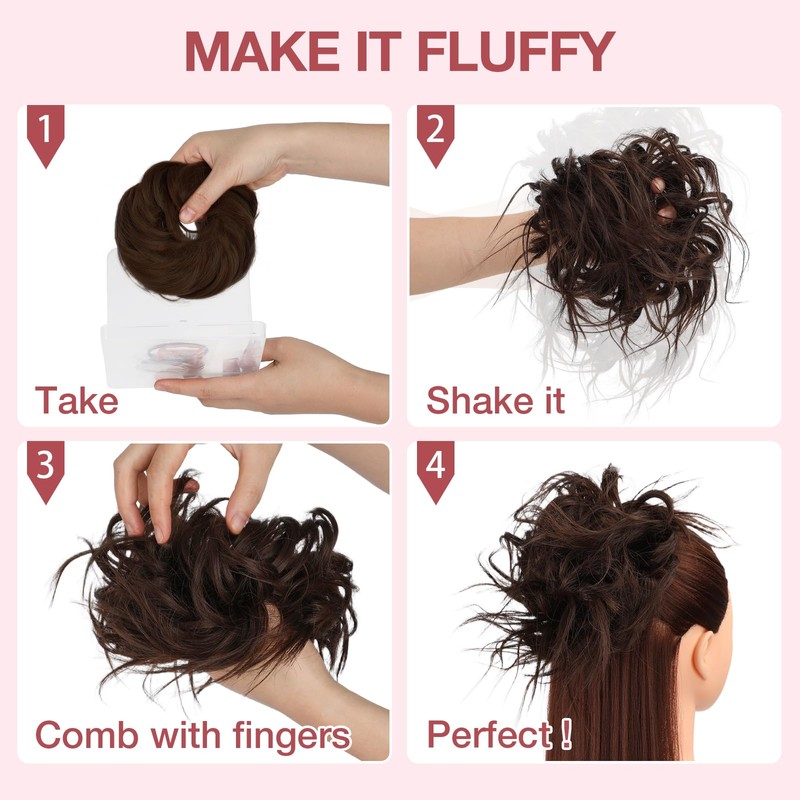 - 【Instant Hairstyle in Seconds】Simply gather your hair into a ponytail or bun, then wrap the messy bun into your desired style. This hair buns hair piece is good for adding volume and fullness to a updo—comfortable, secure, and easy to use.