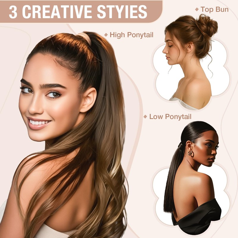 ✨ Instant Length & Fullness – Get 18-24 inches of luscious curly ponytail or sleek straight styles.