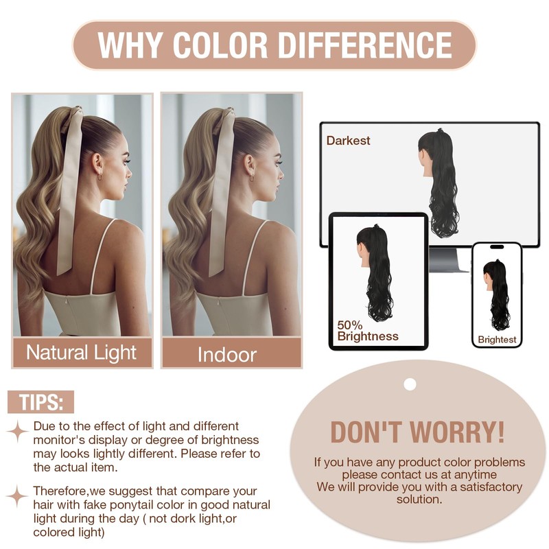 ✔ Realistic Texture – Mimics natural hair with curly, straight, or wavy fake ponytail.
