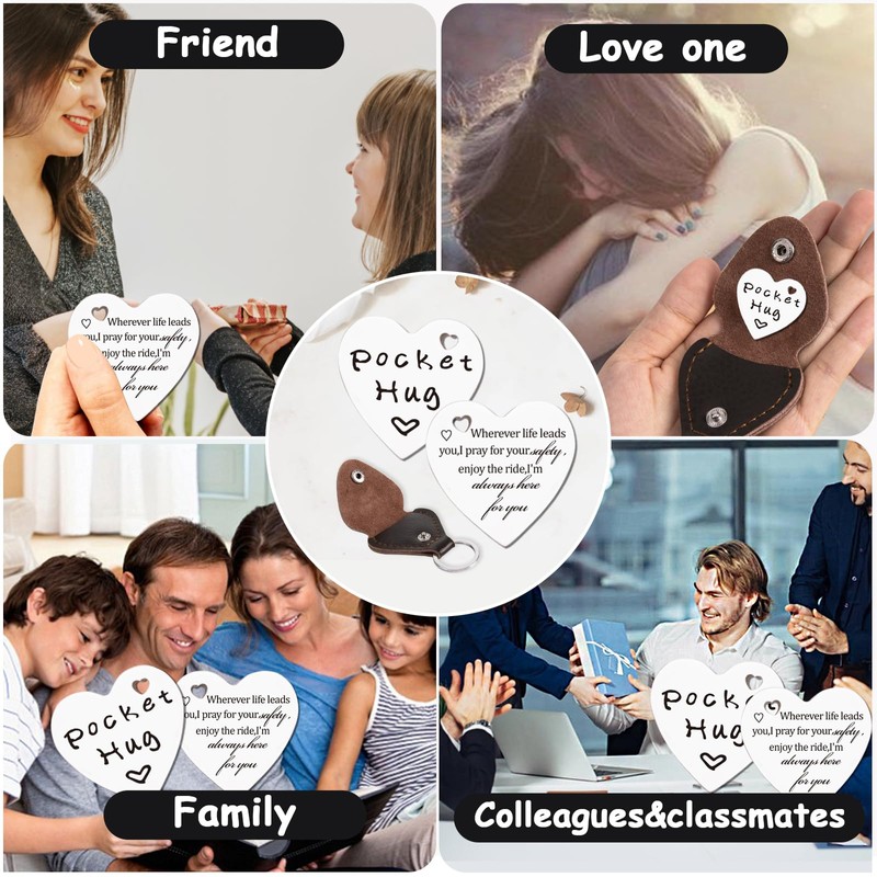 - 【Pocket Hug Token & Leather Keychain】The heart-shaped iron coin is engraved with the powerful message ”Wherever life leads you,I pray for your safety,enjoy the ride,I'm always here for you”,reminding your unwavering support.And the matching keychain is made of genuine leather for a feel Delicate and easy to wear.
