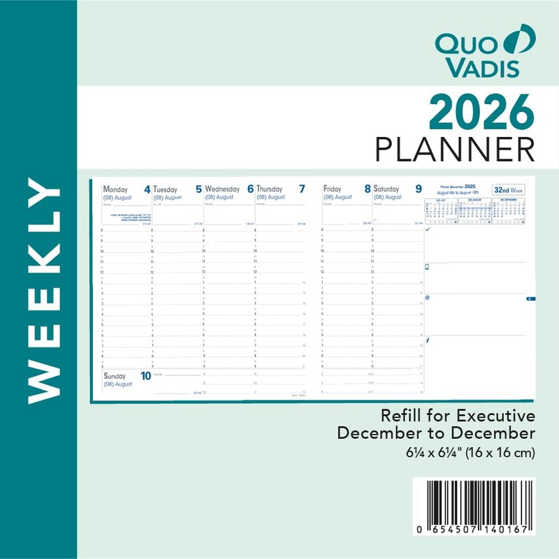 Quo Vadis 2026 Refill for Executive - Weekly Planner - 13 Months, Dec. to Dec. - 6 1/4 x 6 1/4" - Time Management Appointment Organizer