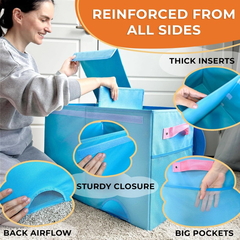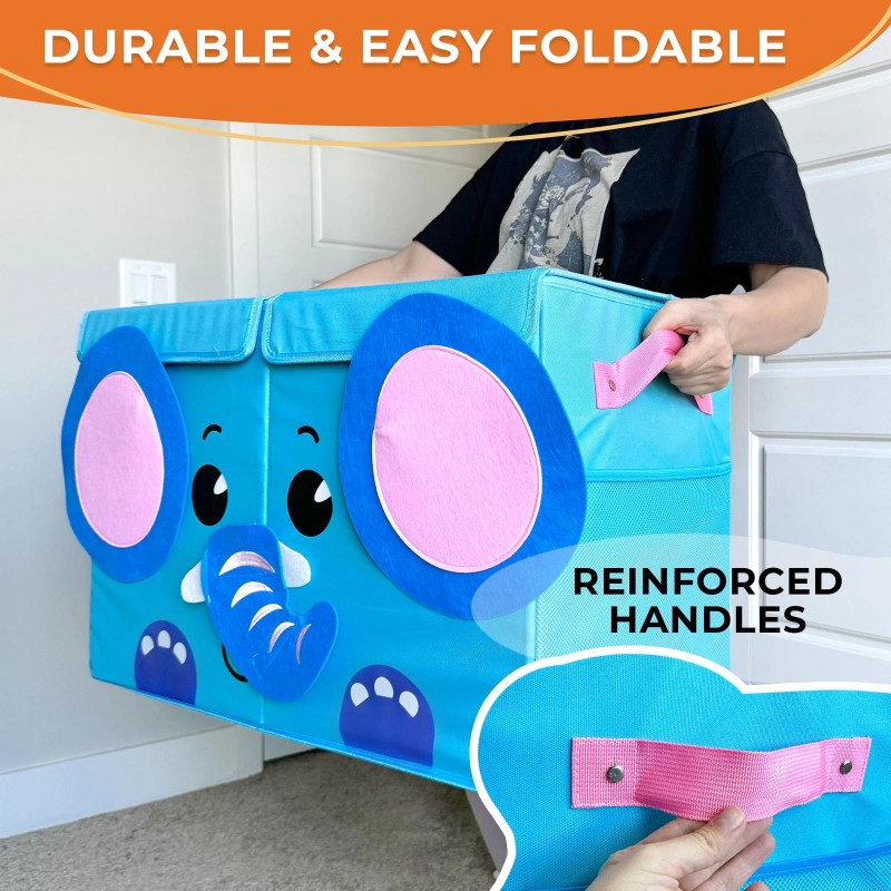 - HIGH QUALITY: toy container is evident in its sturdy handles, which make it easy to move around; The fabric material is thick and durable, ensuring that it will withstand the wear and tear of daily use; The collapsible design makes it easy to store away when not in use
