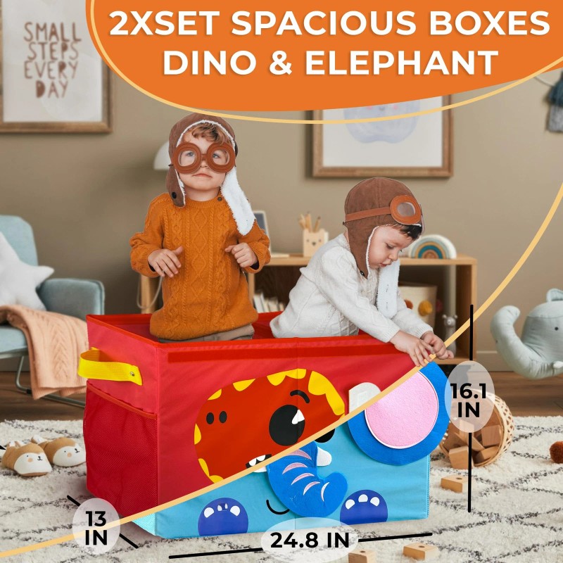 QUOKKA Dino Toy Storage Box Organizer 24.8x16.1x13 In Collapsible Fabric Bin