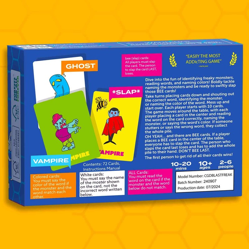 - MONSTER EDITION: A thrilling add-on to the fast-paced, brain-blending party game that will electrify your next game night. Battle against your friends and family by taking turns placing cards down and shouting out the correct color, word or character
