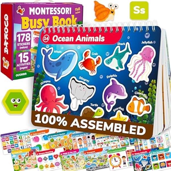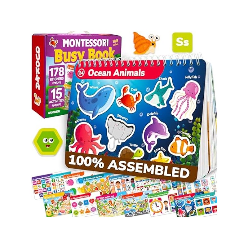 QUOKKA Montessori Busy Book for Toddlers 3-5 - Pre K Toddler Learning Activities for Homeschooling - My Preschool Busy Book for Ages 4-8 - 15 Kids Educational Activities