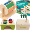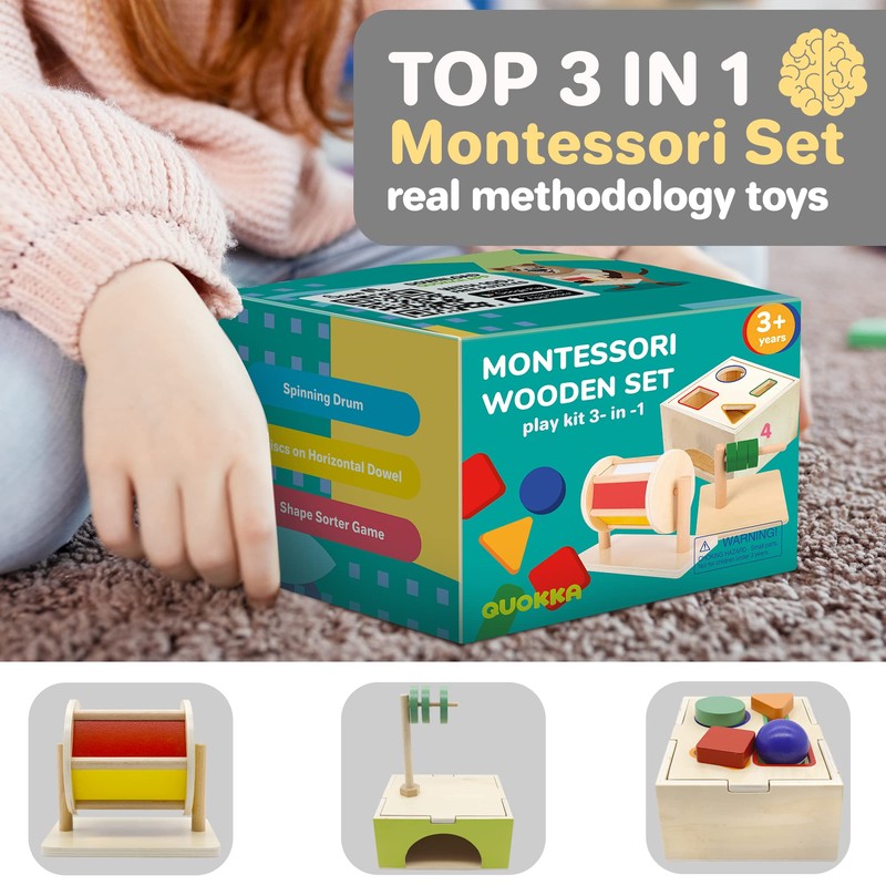 - 3 IN 1 MONTESSORI BABY TOYS: in our set you get spinning drum montessori, baby shape sorter toy and discs on horizontal dowel; Our montessori toys for babies 12+ months are made of a high-quality material and will be in good condition for years