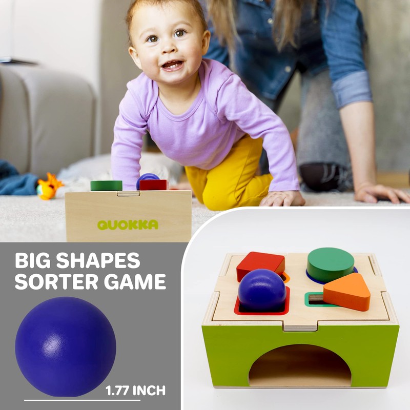 - BABY SHAPE SORTER TOY: our baby shape sorter toy consist of wooden box and 7 colorful shapes; Shape sorter toys for 2 year old are a great opportunity to improve logic and thinking skills of kids; Enoy time playing shape sorter toys for babies 12+ months