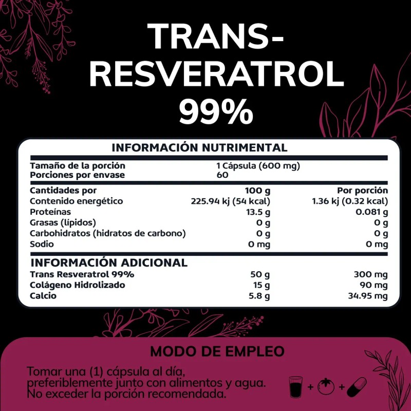 💎 99% pure Trans‑Resveratrol + Collagen + Calcium – fórmula triple acción para belleza y bienestar